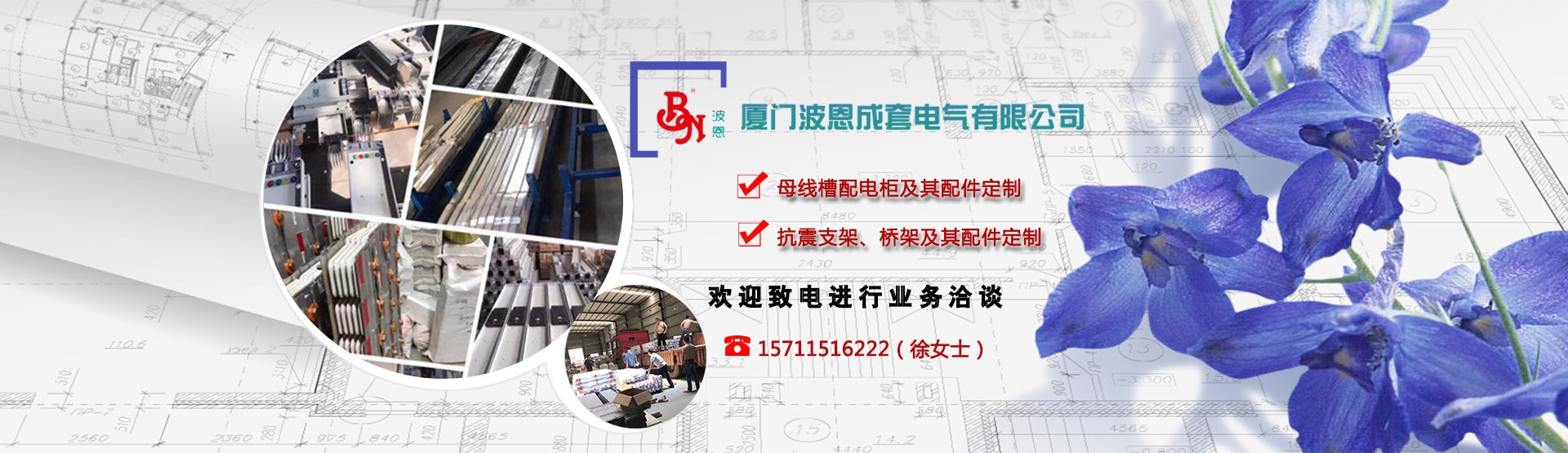廈門波恩成套電氣有限公司是國內(nèi)專業(yè)從事母線槽、電纜橋架、滑觸線、配電柜等系列產(chǎn)品科研、生產(chǎn)和技術(shù)服務(wù)的企業(yè)。公司地處旅游城市——廈門,風(fēng)景優(yōu)美,交通便利。公司專注于母線槽、抗震支吊架以及橋架產(chǎn)品的研發(fā),設(shè)計,生產(chǎn),銷售和服務(wù)的現(xiàn)代化企業(yè)。公司致力于新型配電技術(shù)研發(fā)與新工藝產(chǎn)品制造,為客戶提供突破性的配電一體化解決方案,以優(yōu)異的產(chǎn)品品質(zhì),為數(shù)百家包括有關(guān)部門/機(jī)關(guān)、醫(yī)院、學(xué)校、酒店、寫字樓、商業(yè)中心,工礦企業(yè)等不同領(lǐng)域的客戶提供服務(wù),并得到認(rèn)可和信賴。